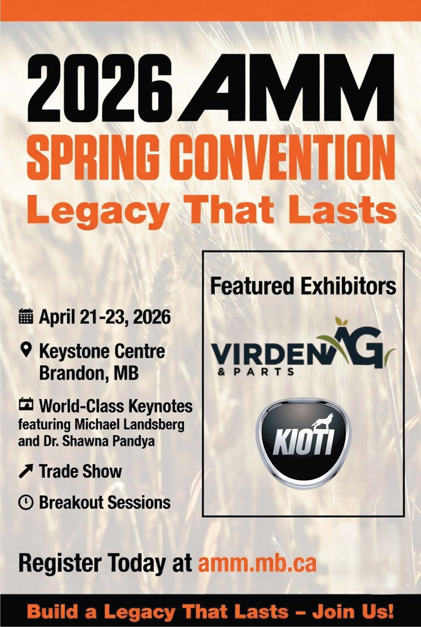 Join Virden Ag & Parts and KIOTI at the Association of Manitoba Municipalities Trade Show on April 21–23 in Brandon, Manitoba.